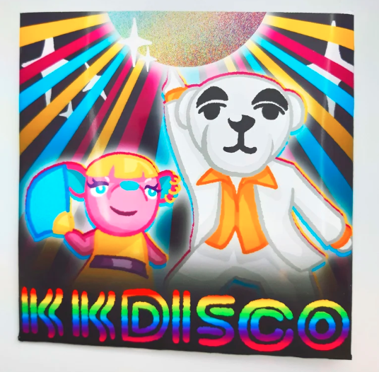 Ayez la musique de KK Slider chez vous – pour de vrai ! – avec ces mini faux vinyles. Choisissez parmi les favoris des fans : Bubblegum KK, Aloha KK, KK Disco, Stale Cupcakes et Rockin' KK.